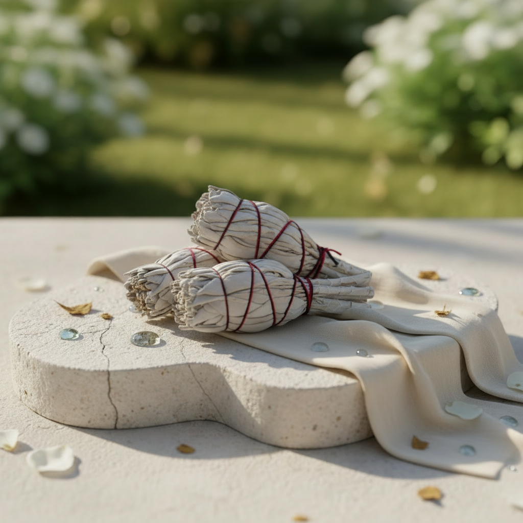 Weißer Salbei wächst hauptsächlich im sonnigen Kalifornien und ist eine der stärksten Pflanzen zum Reinigen und Segnen von Räumen, Lebewesen oder Gegenständen. Sein Duft ist eher streng. Doch unter den Ureinwohnern Nordamerikas gilt er als eine der wenigen Pflanzen, die reine positive Energie tragen. Deshalb wird er verwendet, um Böses abzuwehren und ein geklärtes Bewusstsein zu erzeugen. Oft wird er dem Westen zugeordnet, der Richtung der verehrten Ahnen, des Sonnenuntergangs und der spirituellen Ruhe des Abends.