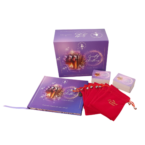For 12 days leading up to Christmas, each family member receives a red velvet bag to store their wishes. Every day, they will write down a special wish on a wish card and, on the back, record one to four acts of kindness they have done that day. These small acts of love help spread the true spirit of Christmas, bringing joy to family and friends.